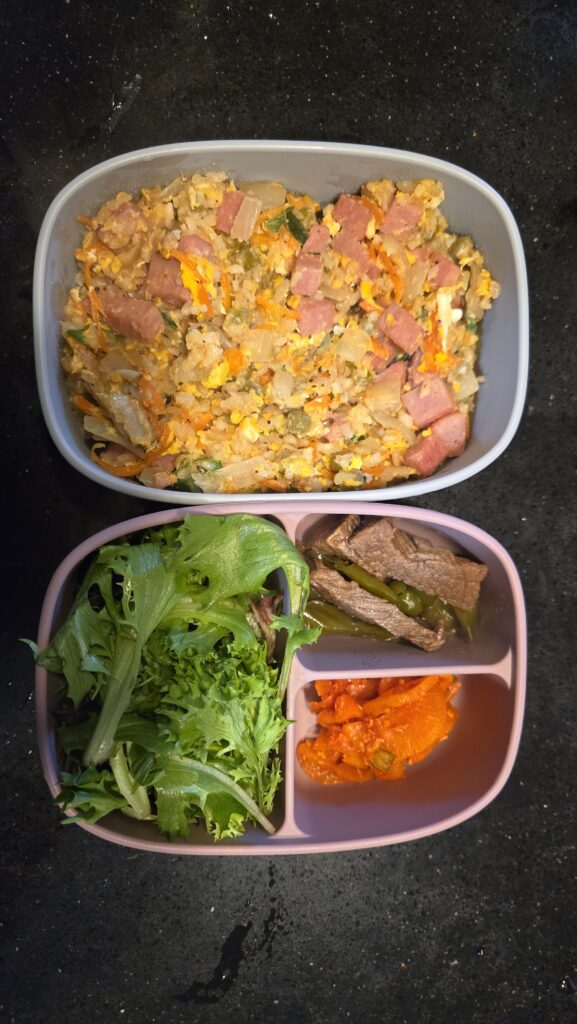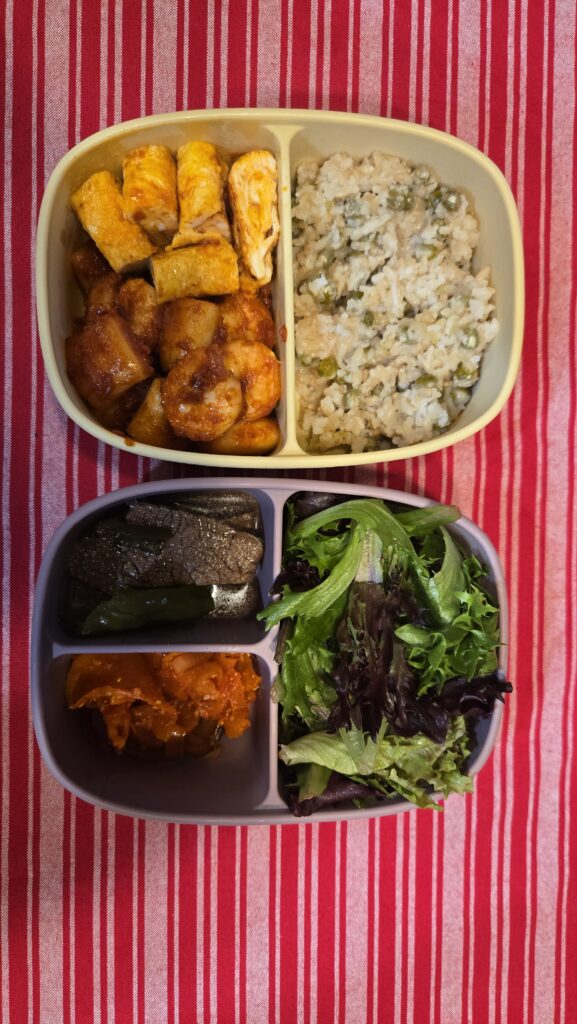 전날 다소 질긴 제육볶음으로 고생한 턱을 위해 훨씬 부드러운 요리로 도시락을 만들었다