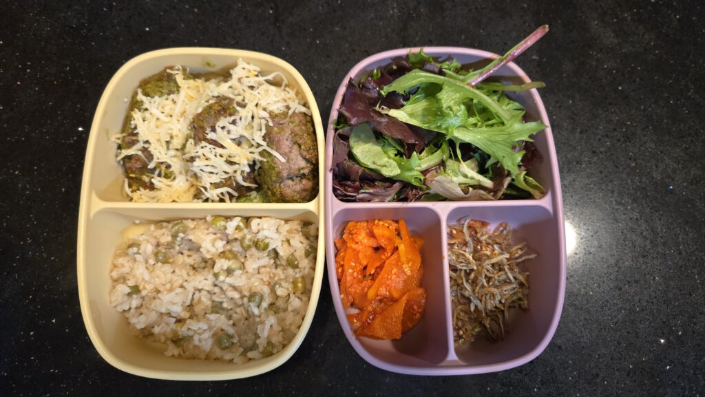 근데 이것만! 먹일 수는 없으니 작은 주먹밥을 ‘밥이랑’을 넣어서 만들어서 넣었다